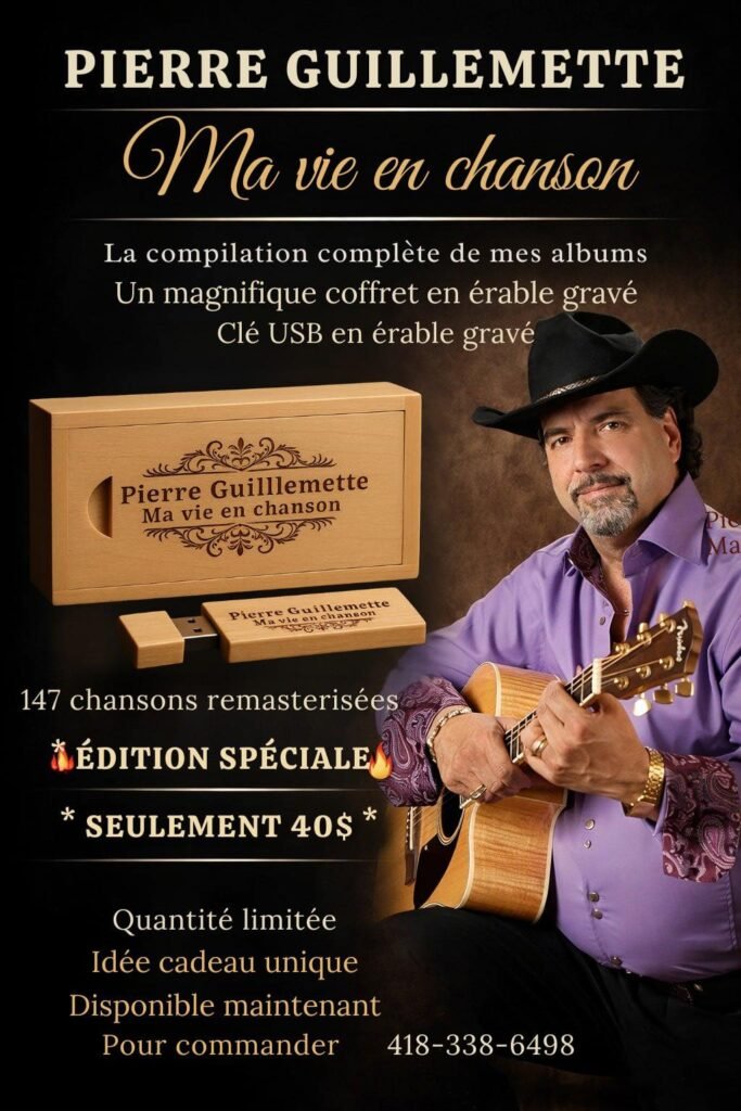 Découvrez « Ma vie en chanson », une compilation unique qui rassemble l’ensemble des albums de Pierre Guillemette dans une édition spéciale conçue pour les amateurs de musique country.